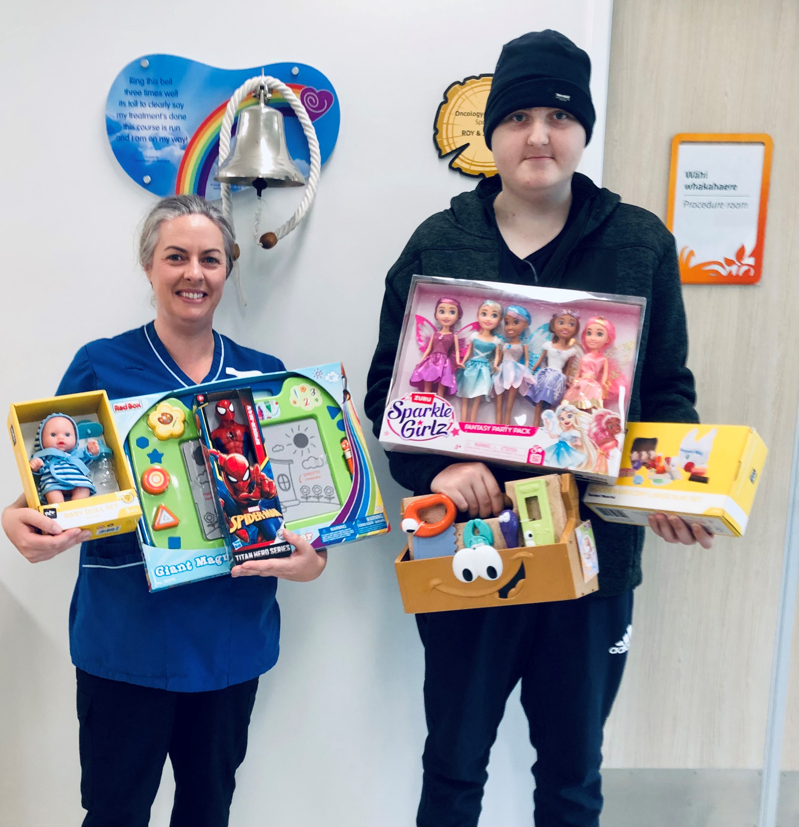 Brendan’s been visiting Te Wao Nui Children’s Hospital for regular chemotherapy treatments and each time he noticed that the toys could use a little extra love.  So, inspired by his Nanny Sue, Brendan decided to help.  Despite his own health challenges and fatigue Brendan teamed up with his Mum Barb for a shopping spree to brighten up the hospital's toy collection.