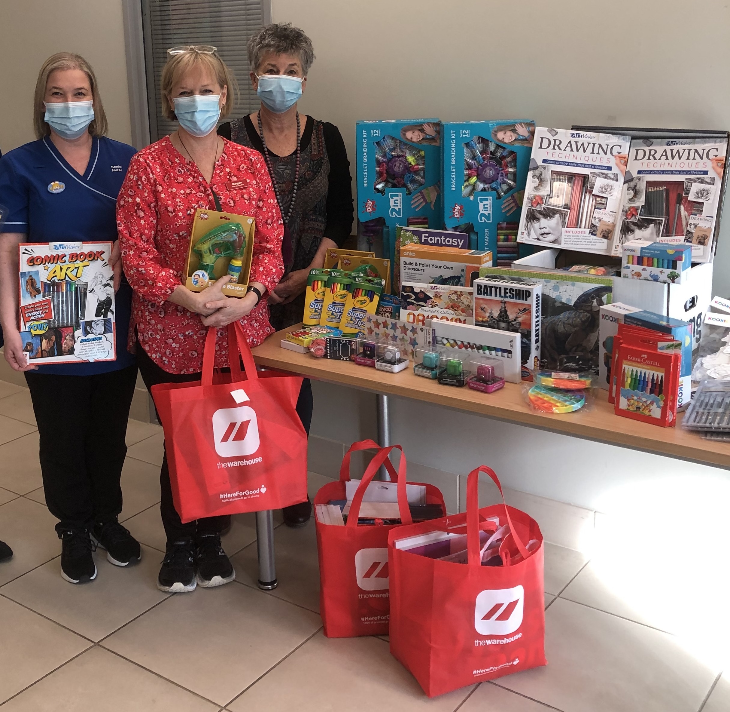 Today with the kind help of The Warehouse Petone, they have donated some very specific toys and activities to the team. In particular there are many older teens who often spend long periods in hospital and Buddle Findlay have provided a collection of much needed age appropriate resources for this group including nail polish, water colour sets, friendship bracelet kits, books and games. Other items for some of our younger patients included a selection of battery operated bubble blowers. These have become essential during COVID as wearing a mask means it’s impossible to blow bubbles to distract children during painful or scary medical procedures. Special thanks to Chris for organising this fantastic annual donation.