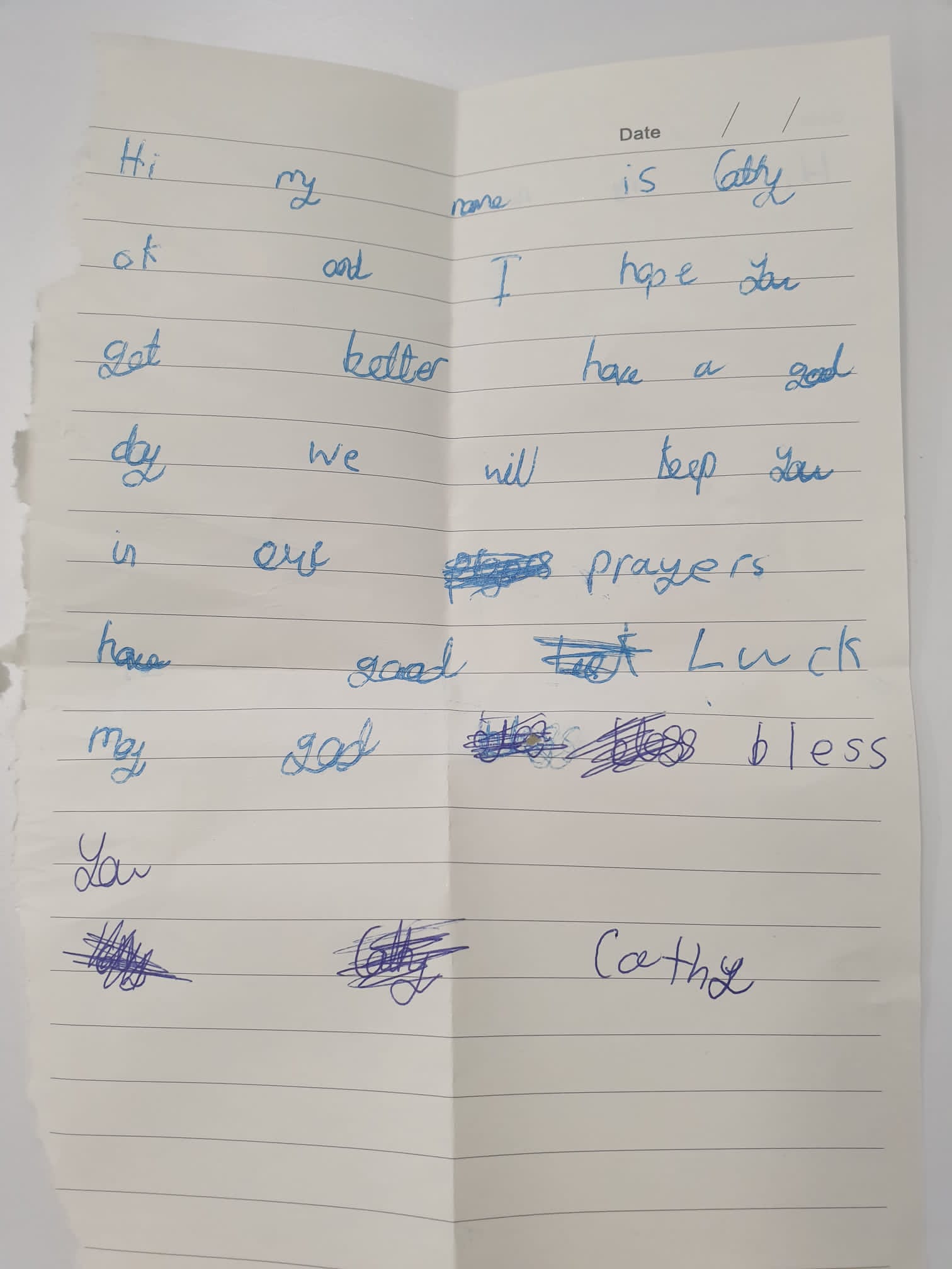 With cancer having touched her family, Cathy wanted to reach out this Christmas by kindly gifting $150 of her savings to our hospital’s Blood and Cancer Unit.