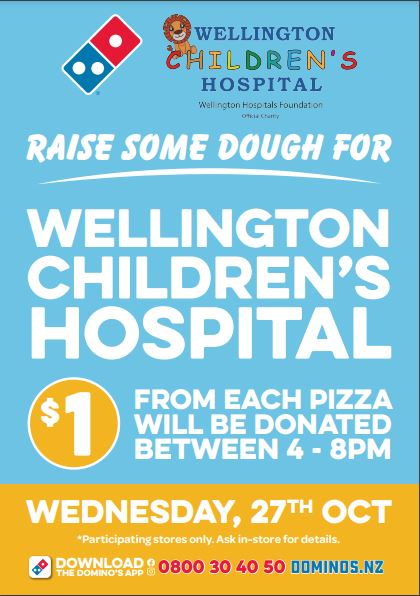 Feel like a midweek treat tonight?  Be part of Domino’s Doughraiser for Wellington Regional Children’s Hospital.