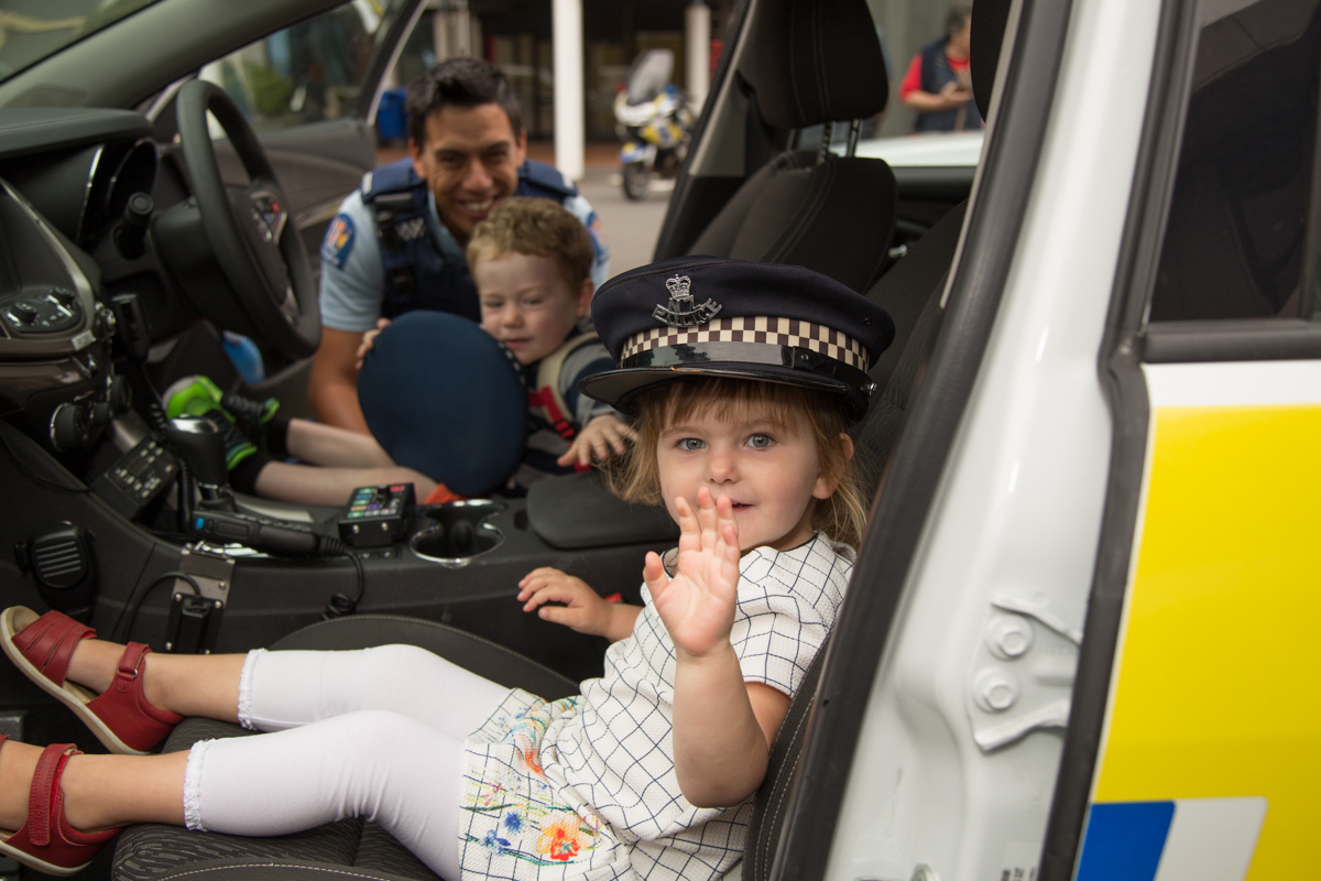 Police cars lined up outside the entrance to the children’s hospital, and members of the New Zealand Police and Armed Offenders Squad delivered the gifts throughout the children’s hospital wards. Children and staff got to meet the officers, dress up in uniform and check out the inside of the Police cars and mobile Police unit.