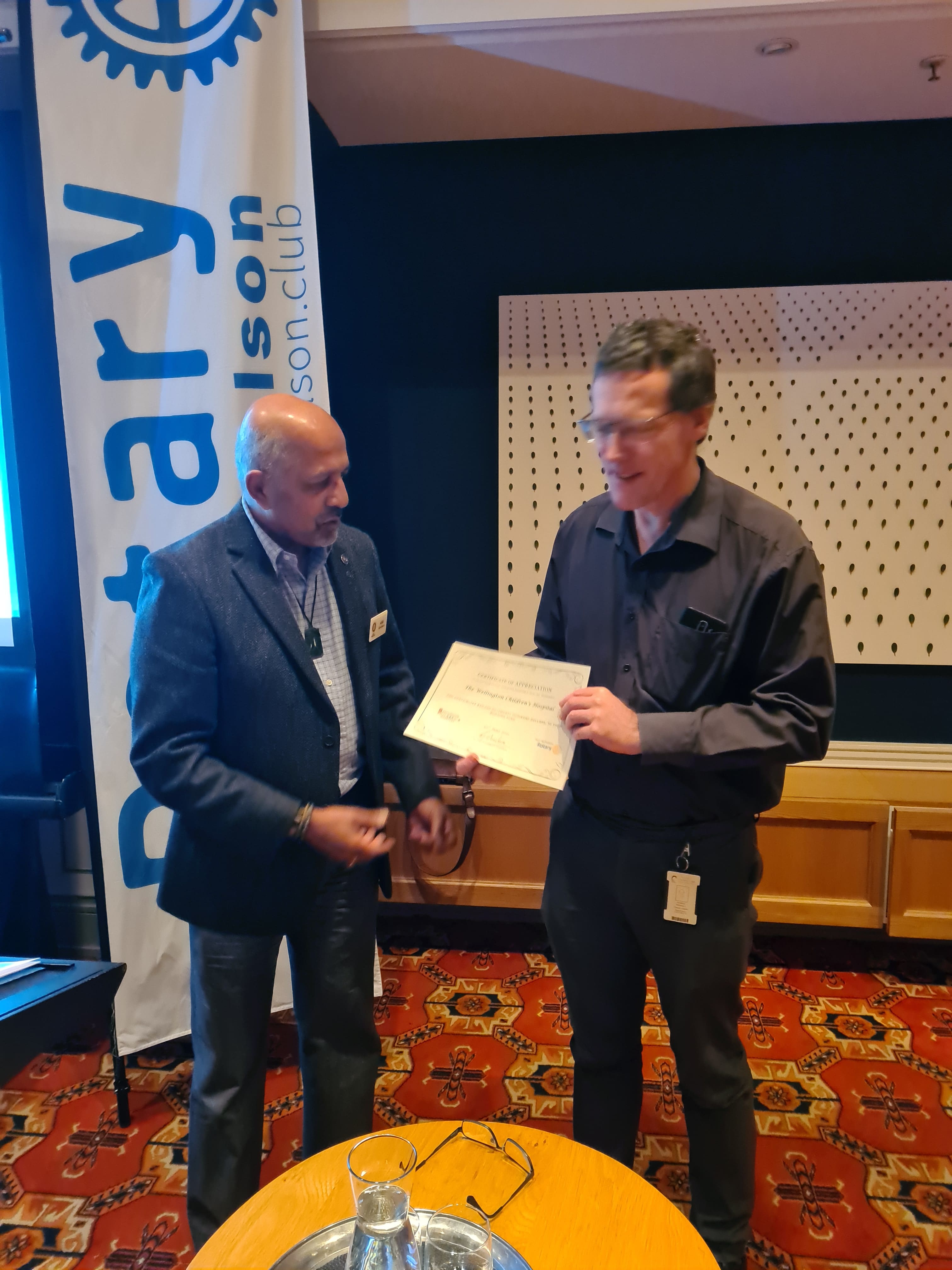 This money will be put towards the two Rotary supported whānau spaces in the New Regional Children's Hospital.