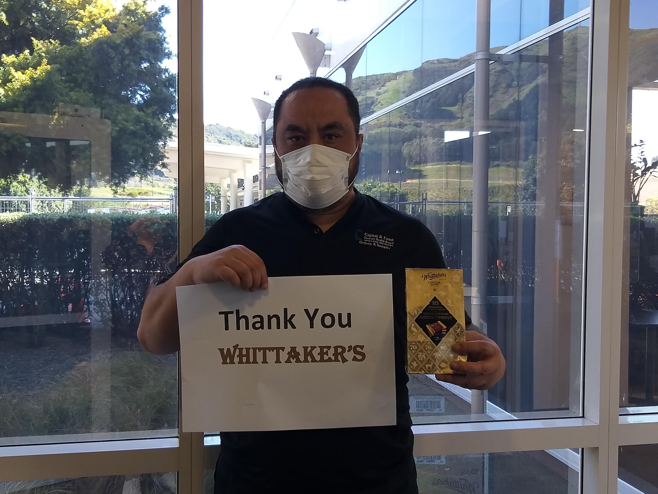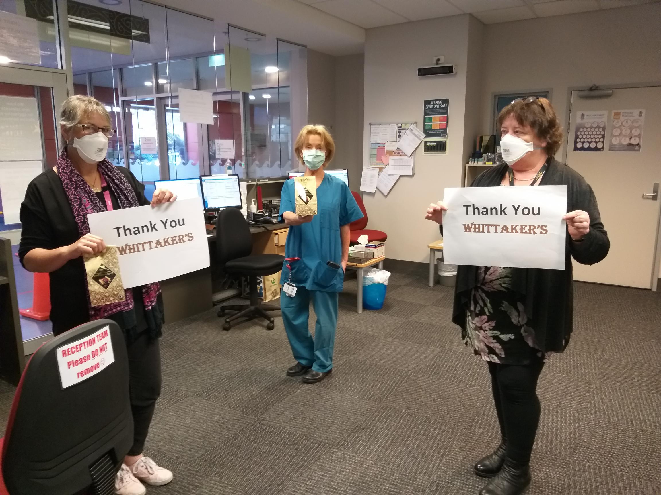 Grateful thanks to the kind people at Whittaker's Chocolate Lovers who once again generously gifted a sweet treat to all the doctors, nurses, physios, administrators, security orderlies, cleaners, pharmacists and the many other hardworking essential healthcare workers across Wellington Regional and Kenepuru Hospitals.
