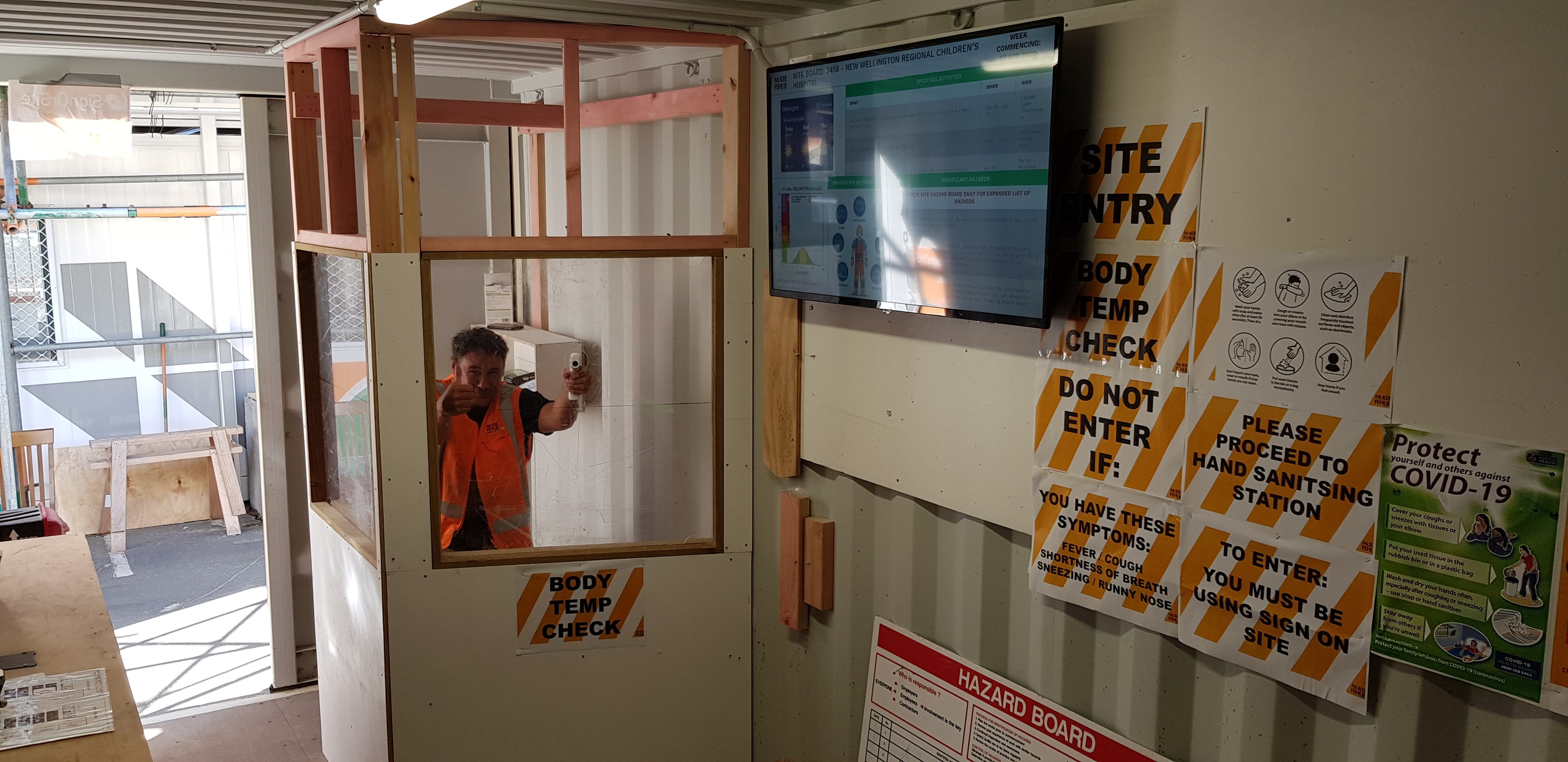 The New Children’s Hospital is a key infrastructure project for the Greater Wellington Region and it’s wonderful to see construction resume so quickly. A new health check container and dedicated handwashing stations have been quickly put in place to comply with all new Health and Safety requirements under the COVID19 Alert Level Three response. While the return of subcontractors has been staggered, we hear the team are keen to get back underway! Pictured wearing the season’s on-trend colour of 'hi-vis orange' and smartly accessorised with his digital thermometer, is McKee Fehl's Site Manager Upega Laulu showing us the new entry to the New Children’s Hospital worksite.