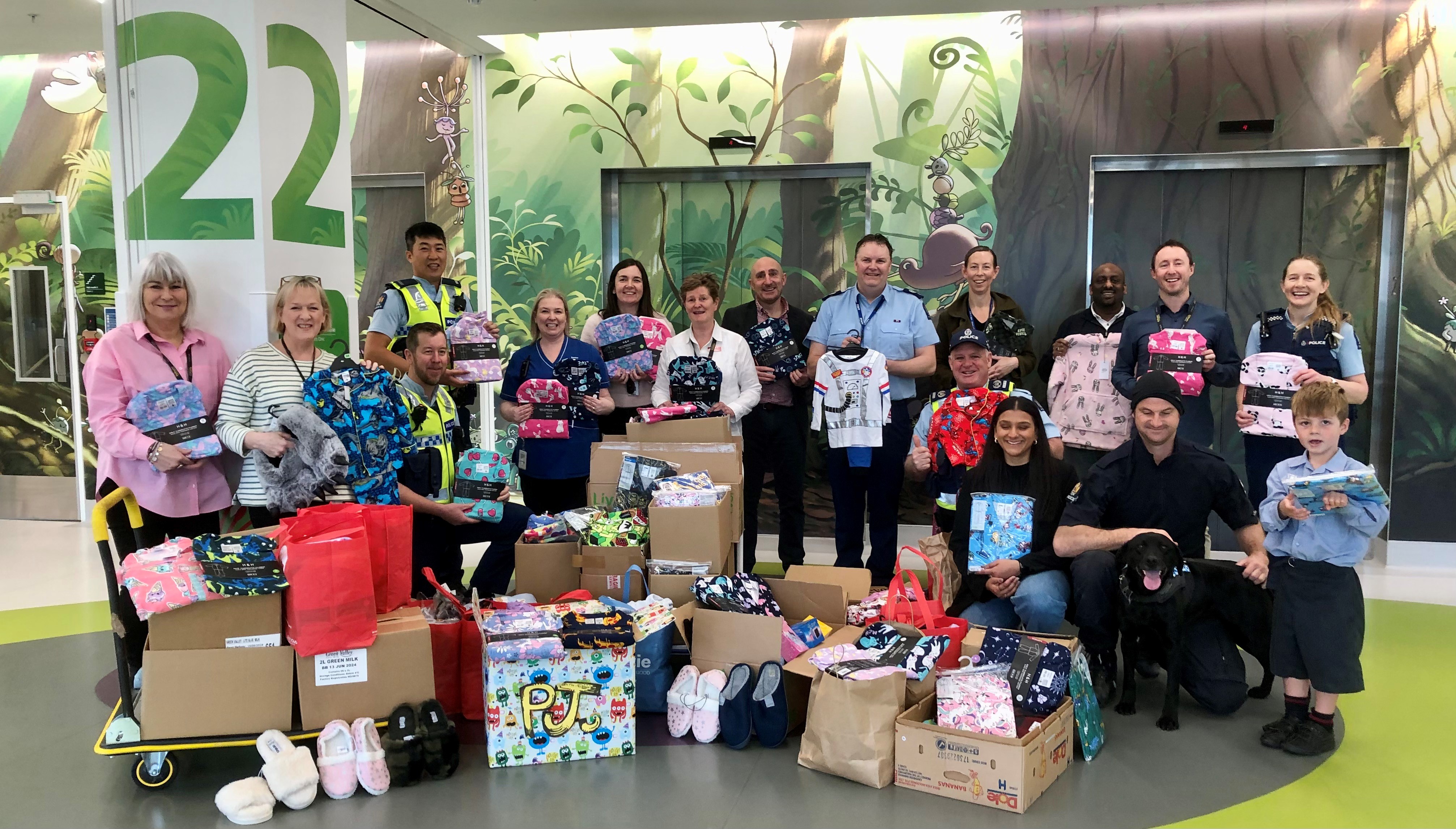 Each winter, Police teams from across the region collect and donate hundreds of warm pyjamas for children in hospital. At Christmas, they return with gifts - often joined by the Dive Squad, AOS, dog handlers and other specialist teams, creating special memories for young patients and their whānau.