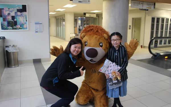 Yovela and her mum meet Hospi when they deliver their pyjamas to Wellington Hospital!
