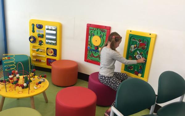 Opened today, the dedicated area separates children from the main waiting room. It includes new seating, a TV and play area.