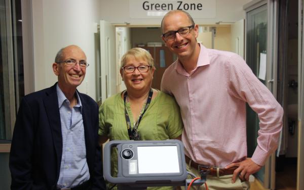 Maurice, with Trish Lee (Bequest Manager) visiting the Wellington Hospital ED department to view the Portable Ultrasound Machine he would later fund for the Oncology Unit. Maurice, with Trish Lee (Bequest Manager) visiting the Wellington Hospital ED department to view the Portable Ultrasound Machine he would later fund for the Oncology Unit.